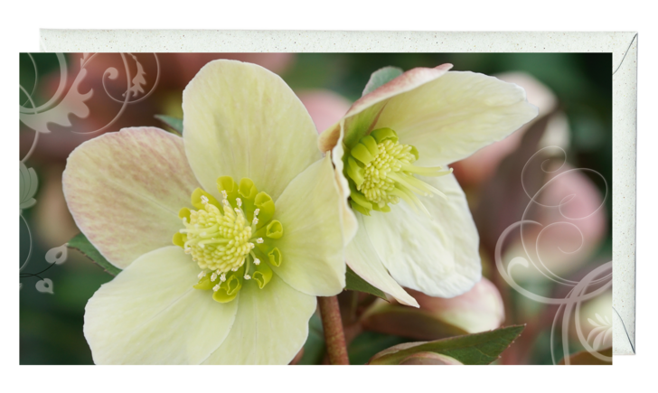 Grusskarte schmal - Closeup der Schneerose 'Merlin'
