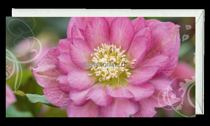 - Grusskarte schmal - Gefülltblühende Lenzrose 'Frilly Isabelle'