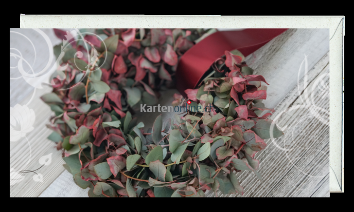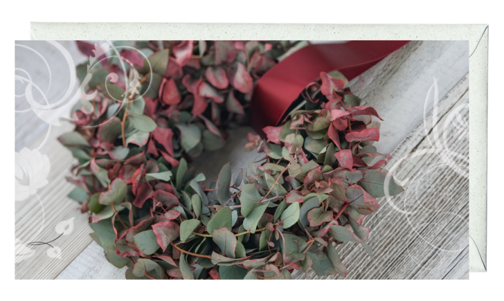 Grusskarte schmal - Moderner Eukalyptus-Türkranz