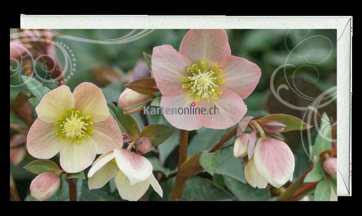 - Grusskarte schmal - Schneerosen (Helleborus x ballardiae 'Merlin')