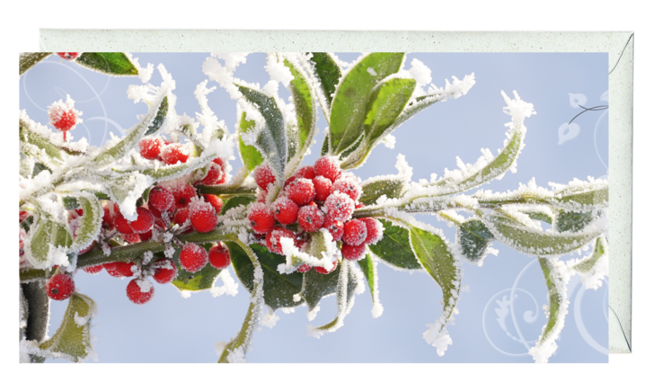Grusskarte schmal - Einheimische Stechpalme mit Raureif