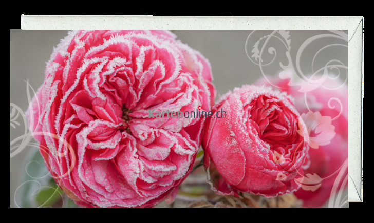 Grusskarte schmal - Floribunda-Rose mit Raureif