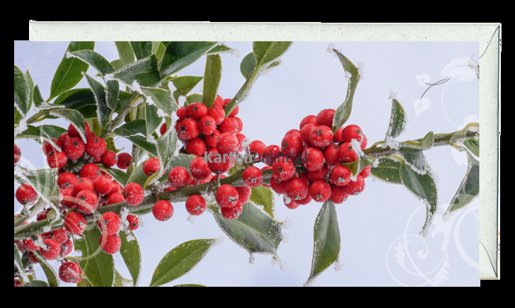 Grusskarte schmal - Früchte der Stechpalme mit Raureif