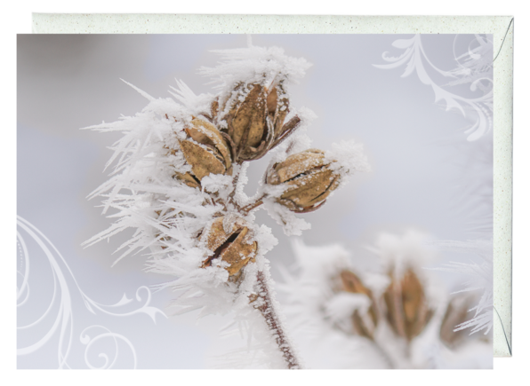 Noble-Karte - Strauchhibiskus-Fruchtstände im Raureif
