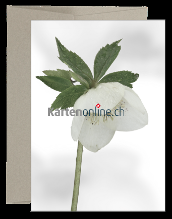 Stilvolle Beileidskarte mit dezenter Farbigkeit, gedruckt auf elegantes, leicht geripptes Naturpapier. Die Lenzrosen (Helleborus x orientalis) haben im Gegensatz zu den Christrosen meist leicht genickte Blüten. Das verleiht ihnen eine bemerkenswert aussagekräftige Symbolik als Trauerblumen. Die Sorte 'Tiffany' trägt das reine Weiss der klassischen Christrosen, während der gesenkte Blütenkopf und die Sprühflecken zur Blütenmitte eher den Lenzrosen zugerechnet werden. Auf jeden Fall vermittelt die dezente Karte die unaufdringliche Botschaft der Anteilnahme an die Hinterbliebnen.