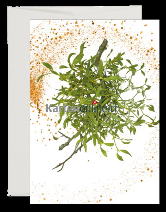 Stilvolle Ereigniskarte mit dezenter Eleganz. Gedruckt auf leicht geripptes Naturpapier. Mistelzweige als Türschmuck sind von altersher weit verbreitet. Die Mythologie sagt, dass sie für Liebe und Fruchtbarkeit sorgen. Ob das auch mit einer Karte funktioniert, ist uns nicht überliefert, aber als beliebtes Symbol für den Neuanfang, für Glückwünsche zum Start ins neue Jahr, dürfte unsere «Mistelkarte» auf jeden Fall zielführend sein…