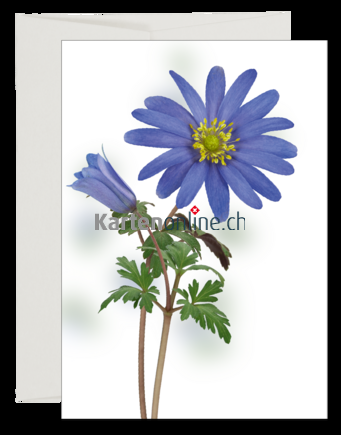 Stilvolle Ereigniskarte mit dezenter Eleganz. Gedruckt auf leicht geripptes Naturpapier. Das Balkan-Windröschen (Anemone blanda) ist mit unseren einheimischen Buschwindröschen, die im Frühling den Waldboden verzaubern, verwandt. Es etabliert sich im Hausgarten auch im Halbschatten des Eingangsbereichts rasch und heisst im Frühjahr Besucher mit ihren leuchtenden Blütenrädern willkommen.